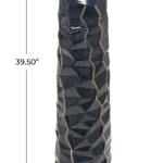 Faceted teal floor vase is constructed of solid stoneware for a durable structure.