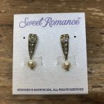 Dainty yet sophisticated, these Art Deco earrings may be an everyday favorites or reserved for special occasion, They are slightly curved and set with premium crystal, tapering to 6mm suspended pearls. Approx 1″ x 1/4″ Hand burnished bronze.