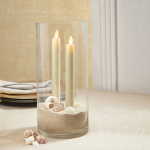 Modern Edge; Patented Design; Made from Resin; Blow-out feature; Built-in timer and remote ready; Requies 3 AA Batteries (sold separately); min. 300 hrs run time