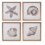 Add coastal style with this assortment of four sea life oil paintings. Comes in a wood frame.