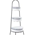 Features a 3 solid half-circled tier metal rack with 4 metal legs, rubber-bottom feet, distressed white base finish and navy stripes design