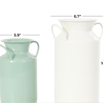 This metal set of 2 vases features a milk jug shape with handles, adding a touch of elegance and functionality to their design.