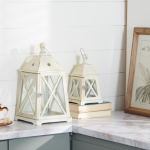 WHITE METAL LIGHTHOUSE STYLE CANDLE LANTERN-L