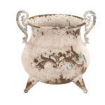 Features elegantly crafted curved handles, and a tripod design short metal legs