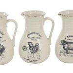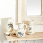 This vase is made up of pure porcelain, features oinochoe-style vases with vintage-stamped farmhouse texts and illustrations