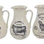 This light weight and scratch-resistant vase are made up of pure porcelain, features oinochoe-style vases with vintage-stamped farmhouse texts and illustrations