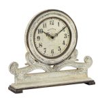 With its nostalgic vibe, this table clock Decor, highlights a heavily distressed parchment white finish
