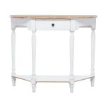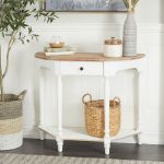 A stunning white and brown console table crafted of robust wooden material for long-lasting use