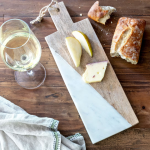 This beautiful 14 inch, contemporary cutting board showcases the warmth and sustainability of durable mango wood and marble. Elegantly designed with a minimalistic style, this board is sure to level up your dinner parties and make your culinary creations look even more appetizing. Delight your guests by creating a beautiful charcuterie board display of everything from meat, sushi, fruits, and cheese to pastry and bread with this cutting board. Clean up quickly after your dinner guests leave with just mild soap and water, and store it until next time with the convenient handle hanger.